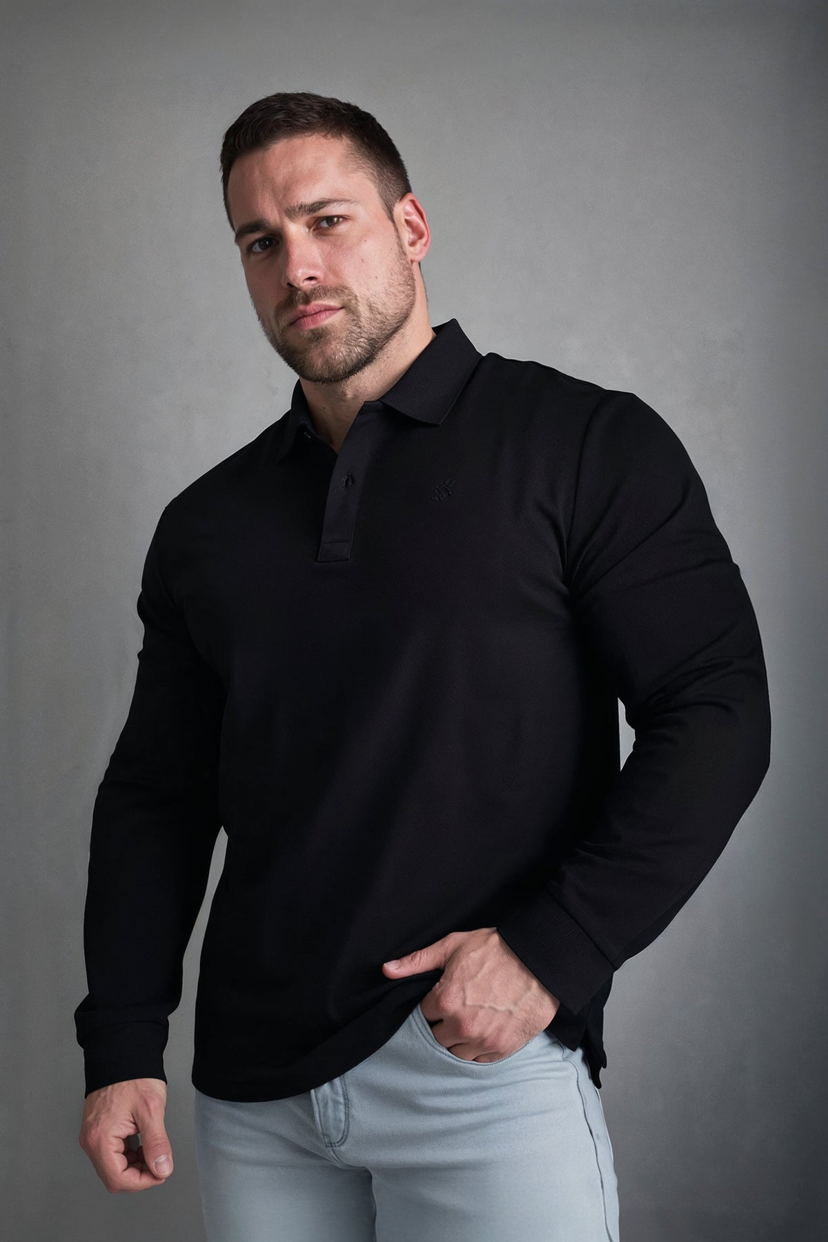 Polo Button-Up Longsleeve - Black