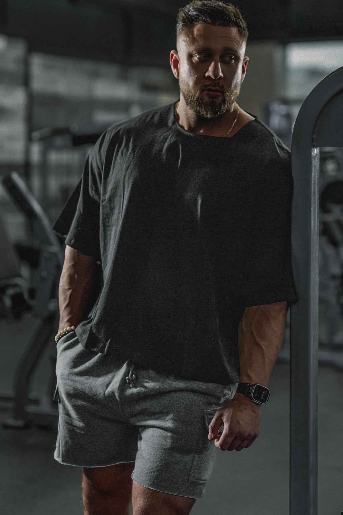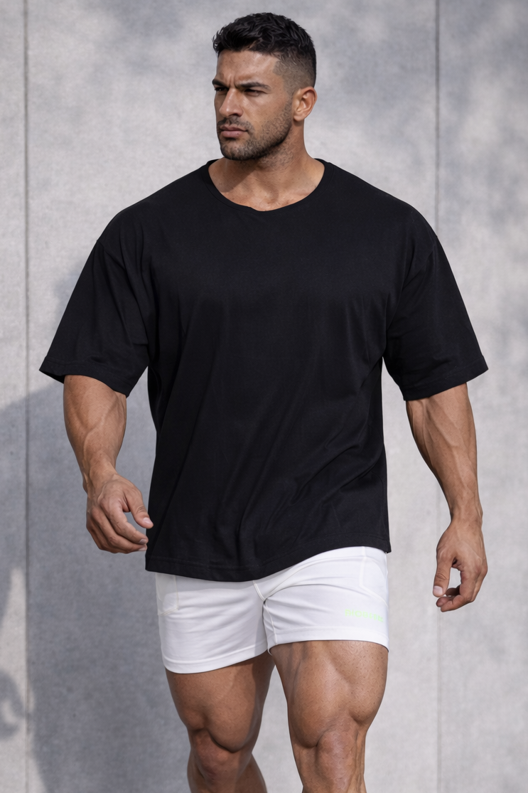 • Loose-fitted drop shoulder fit. Boxy cut.
